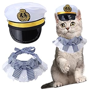 • Yewong-2-Pieces-Pet-Sailors-Costume-Accessory-Set-Dog-Cat-White-Captain-Hat-with-Pet-Lace-Bib-Collar-for-Cat-Puppy-Navy-Halloween-Cosplay-Costume-Party-Supplies-Set-B